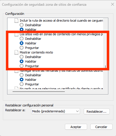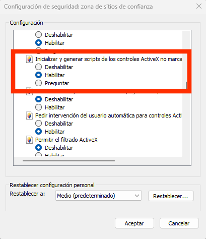 - Inicializar y generar scripts de los controles ActiveX no marcos como seguros
